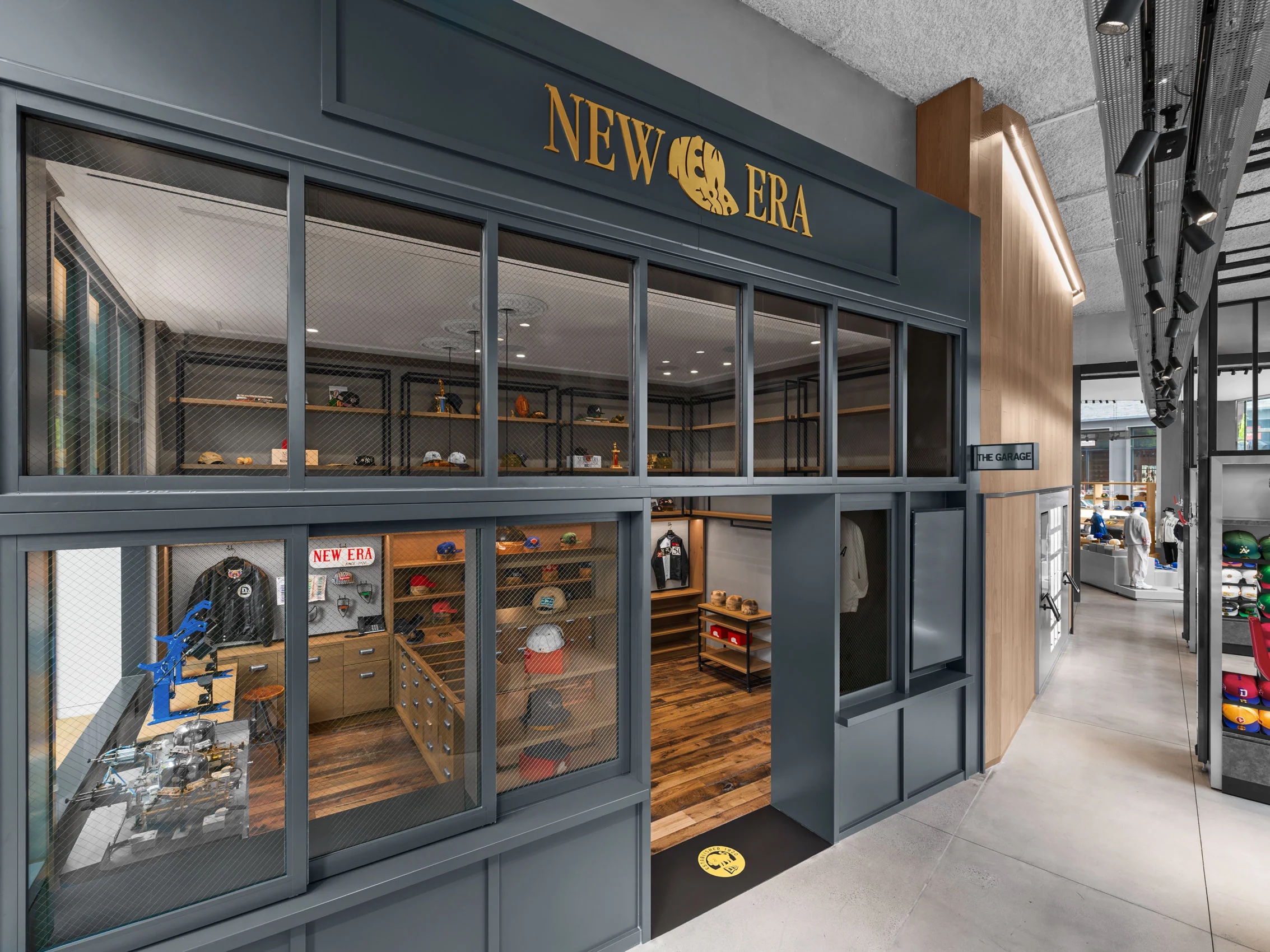 The flagship aims to connect with its fanbase by featuring licensed headwear and apparel and exclusive collaborations. Also available to guests is “The Garage,” designed to mimic a haberdashery decorated with vintage memorabilia, where customers can customize their caps with patches, pins and brim and crown shaping.