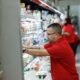 Workers stock merchandise in the grocery section of a Target. Photo: Jeff Schear/Getty Images for Target)